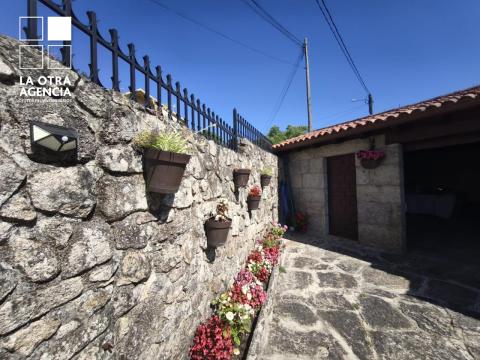 Ubicada en una tranquila calle a tan solo 500 metros de la plaza de Mondariz, la propiedad ofrece acceso excelente y privacidad total. El garaje adosado, con capacidad para varios vehículos y elegantes vigas de madera vistas, da la bienvenida a quienes buscan comodidad sin renunciar al carácter.