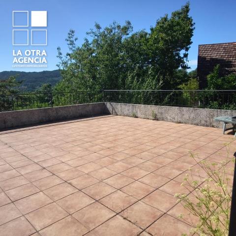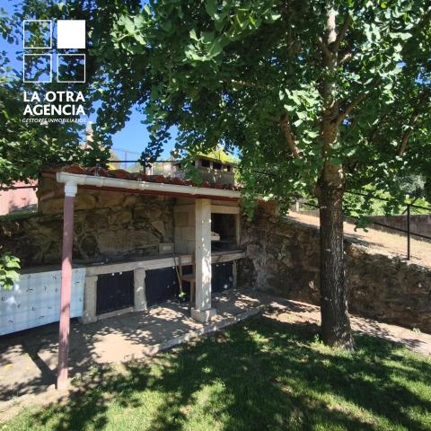 La propiedad cuenta además con una amplia terraza de unos 60 m², perfecta para reunirse con amistades y familia. Bajo ella se ha dispuesto un asador con mesa para doce comensales, ideal para celebraciones al aire libre. Desde aquí se accede a una zona ajardinada llana de aproximadamente 900 m², espacio idóneo para instalar una piscina, zona de juegos o simplemente disfrutar de la tranquilidad.